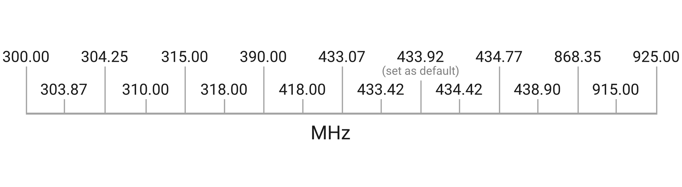 Algunas frecuencias pueden estar bloqueadas para transmisión en su regiónFlipper Zero puede recibir señales en todas las frecuencias de las bandas operativas. Sin embargo, Flipper Zero puede transmitir señales solo en las frecuencias permitidas para la transmisión en su región.